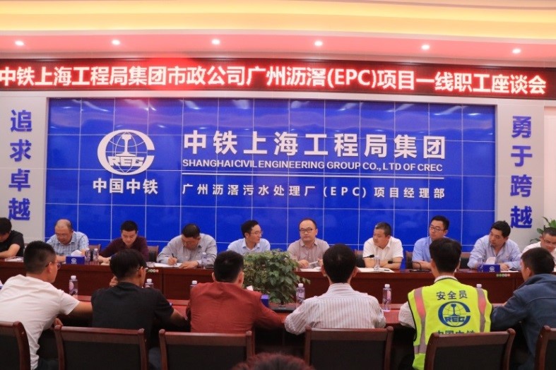 5月5日,公司黨委書記尹朝援到廣州瀝滘污水處理廠(EPC)項目經理部檢查指導工作。公司總經濟師王小波陪同。