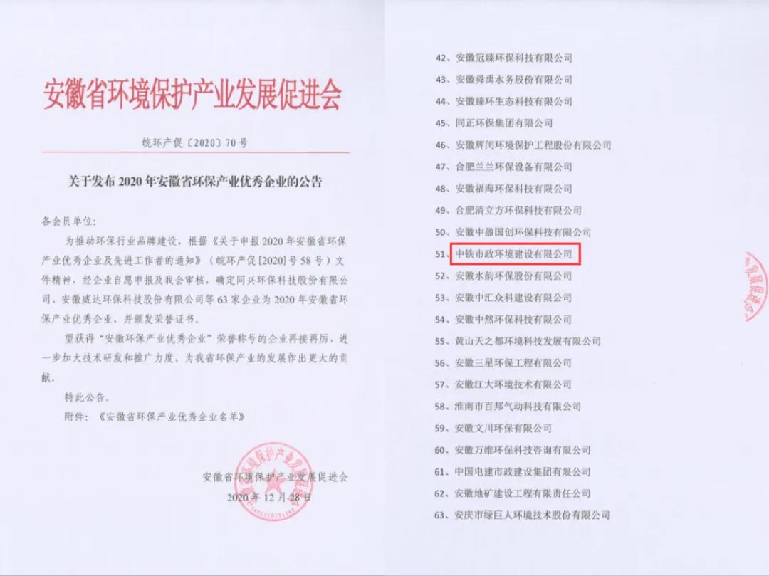 2020年12月,安徽省環(huán)境保護產業(yè)發(fā)展促進會發(fā)布“2020年安徽省環(huán)保產業(yè)優(yōu)秀企業(yè)”公告、“2020年安徽省AAA級環(huán)保施工示范工地”通知及“2020年安徽省環(huán)保產業(yè)優(yōu)秀企業(yè)及先進工作者”的公告。...
