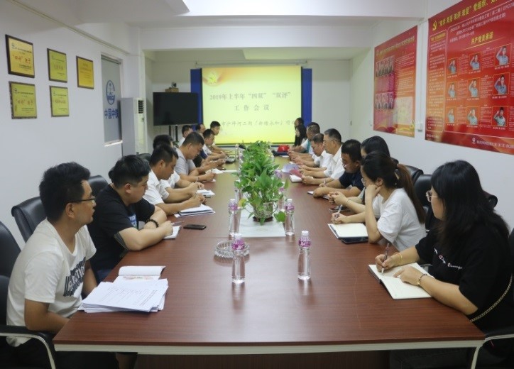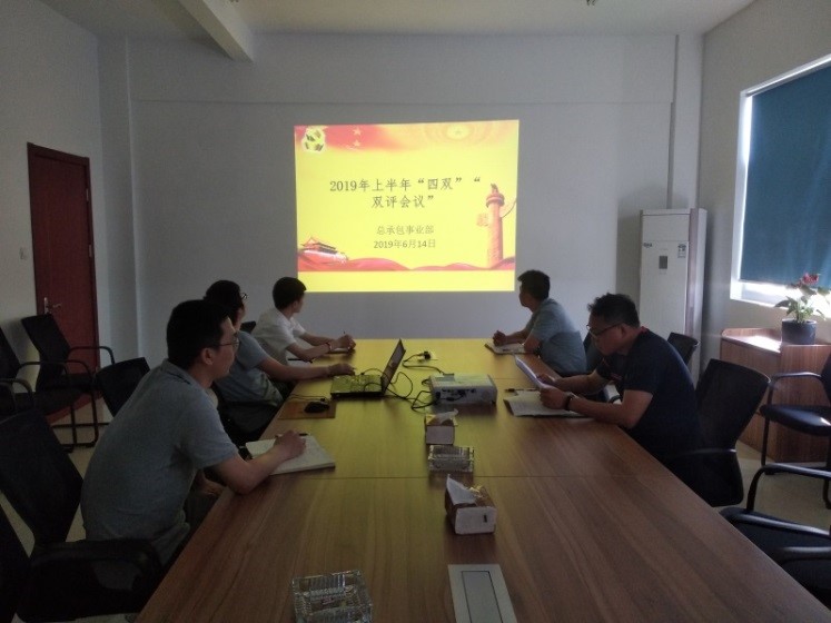 6月14日,總承包事業部黨支部組織召開2019年上半年“四雙”“雙評”工作會議,事業部全體員工參會。(白勇龍)