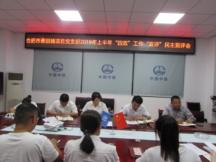 6月15日,合肥蔡田鋪項目黨支部召開2019年上半年“四雙”工作“雙評”民主測評會議。會議由項目副書記主持,項目部全體職工參加。(朱天娥)